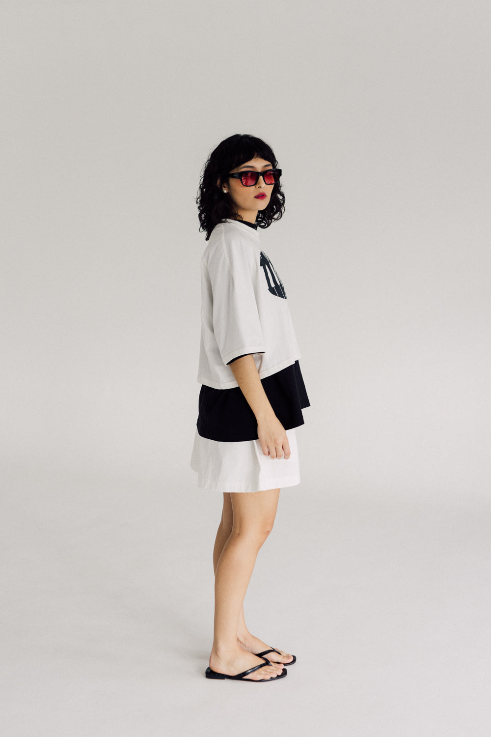 Esta camiseta en algodón 100% es nuestra versión de una silueta tipo crop top sin ser demasiado corta, incluye nuestro diseño de mangas tipo raglán para mejor ajuste y caída sobre el hombro.