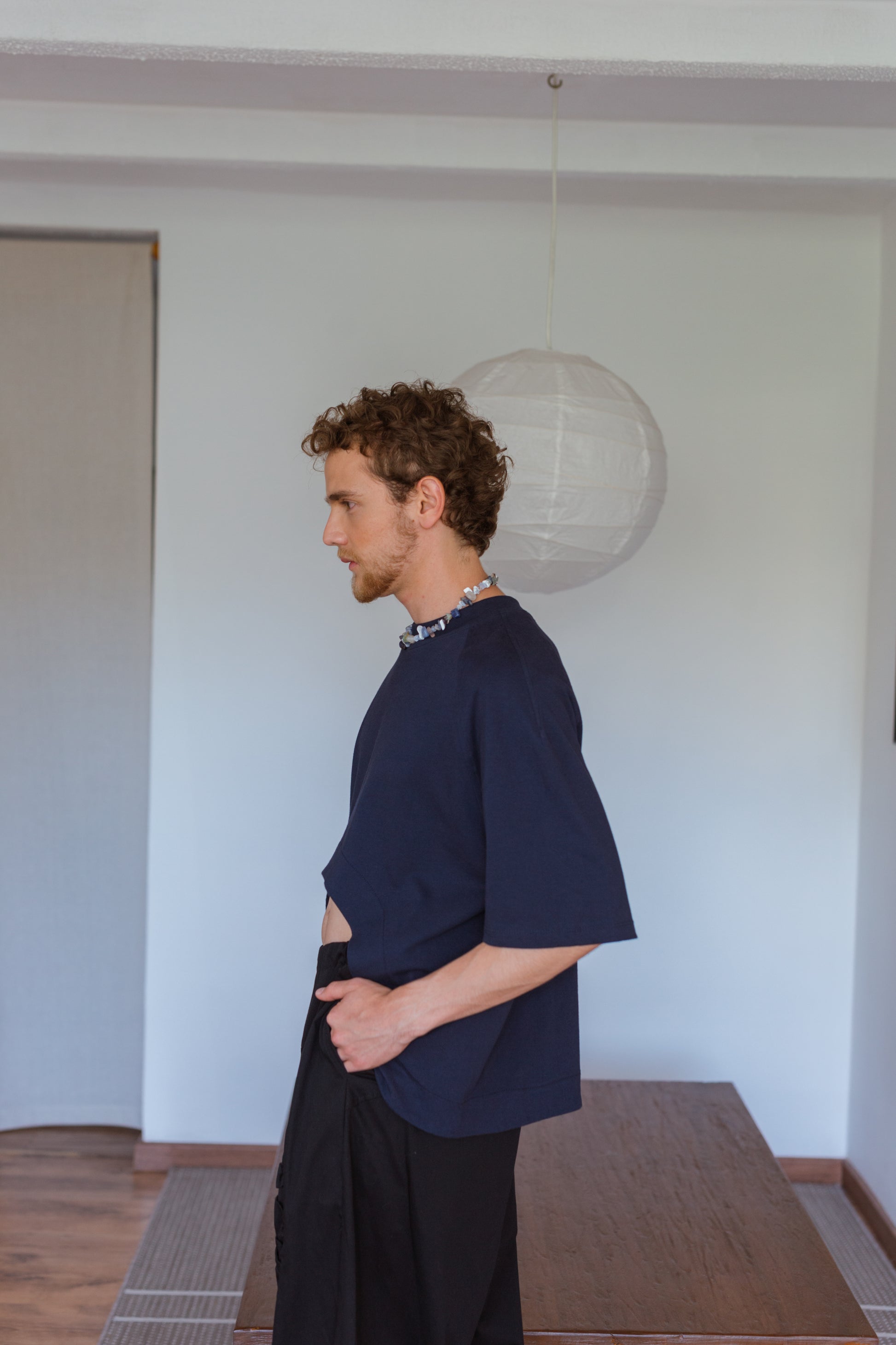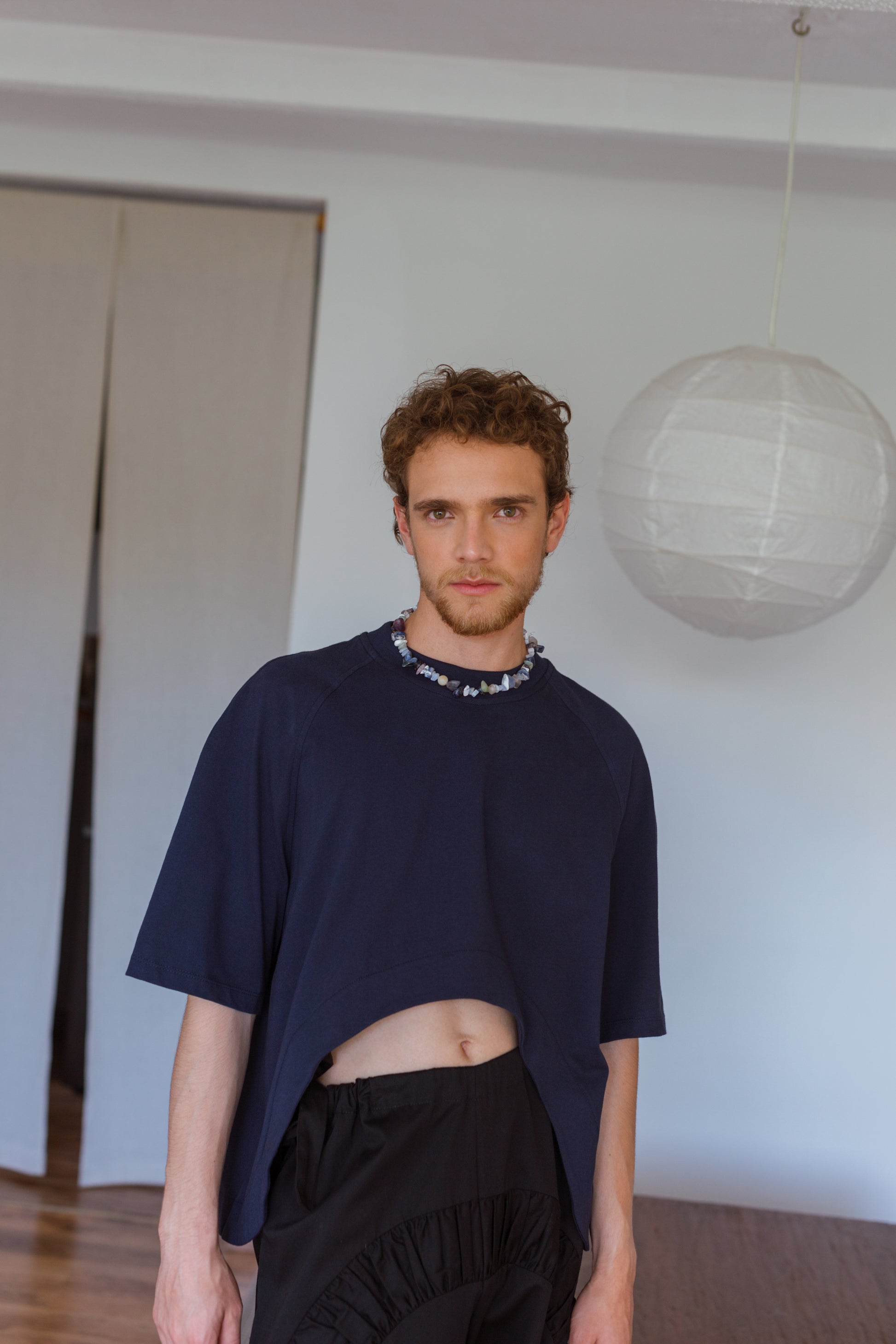 Multitalla_ Esta prenda está diseñada para que la silueta se ajuste al cuerpo del usuario, ya sea por amarres o su manera de caer sobre el cuerpo. Al ser construidas en algodón 100% nuestras prendas RIDDANCE no tienen stretch y la moldería es la que da el ajuste, por este motivo todas nuestras prendas tendrán un fit diferente según el cuerpo que las use.