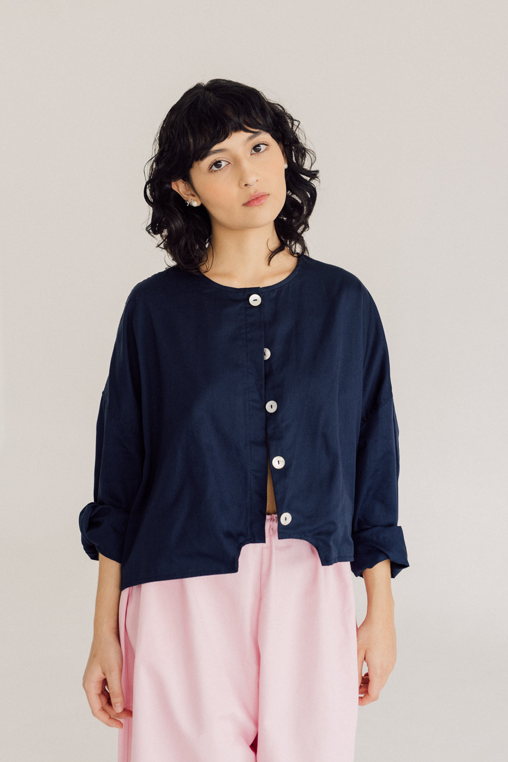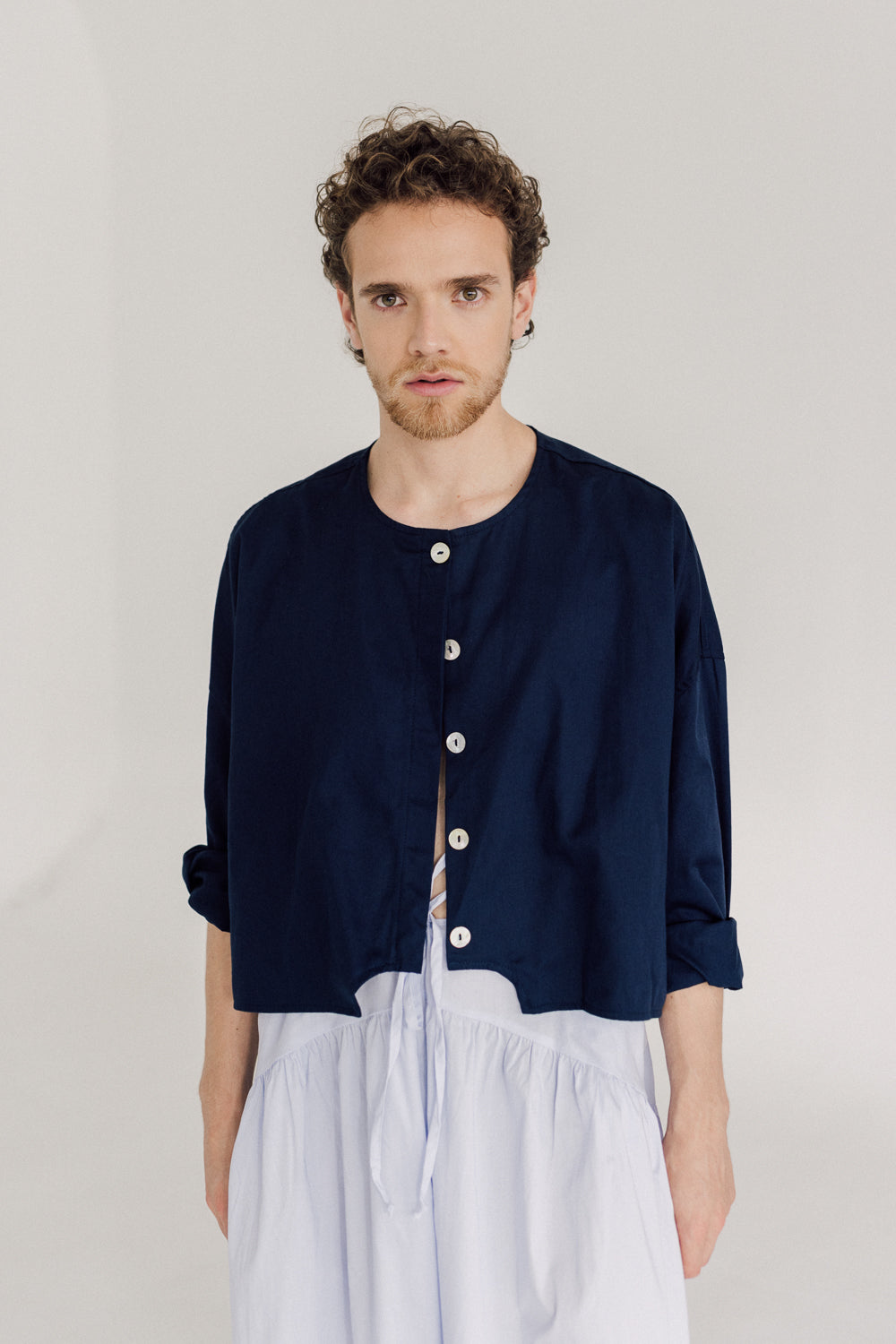 Algodón 100% con certificación BCI (Better Cotton Initiative), botones en concha nácar.