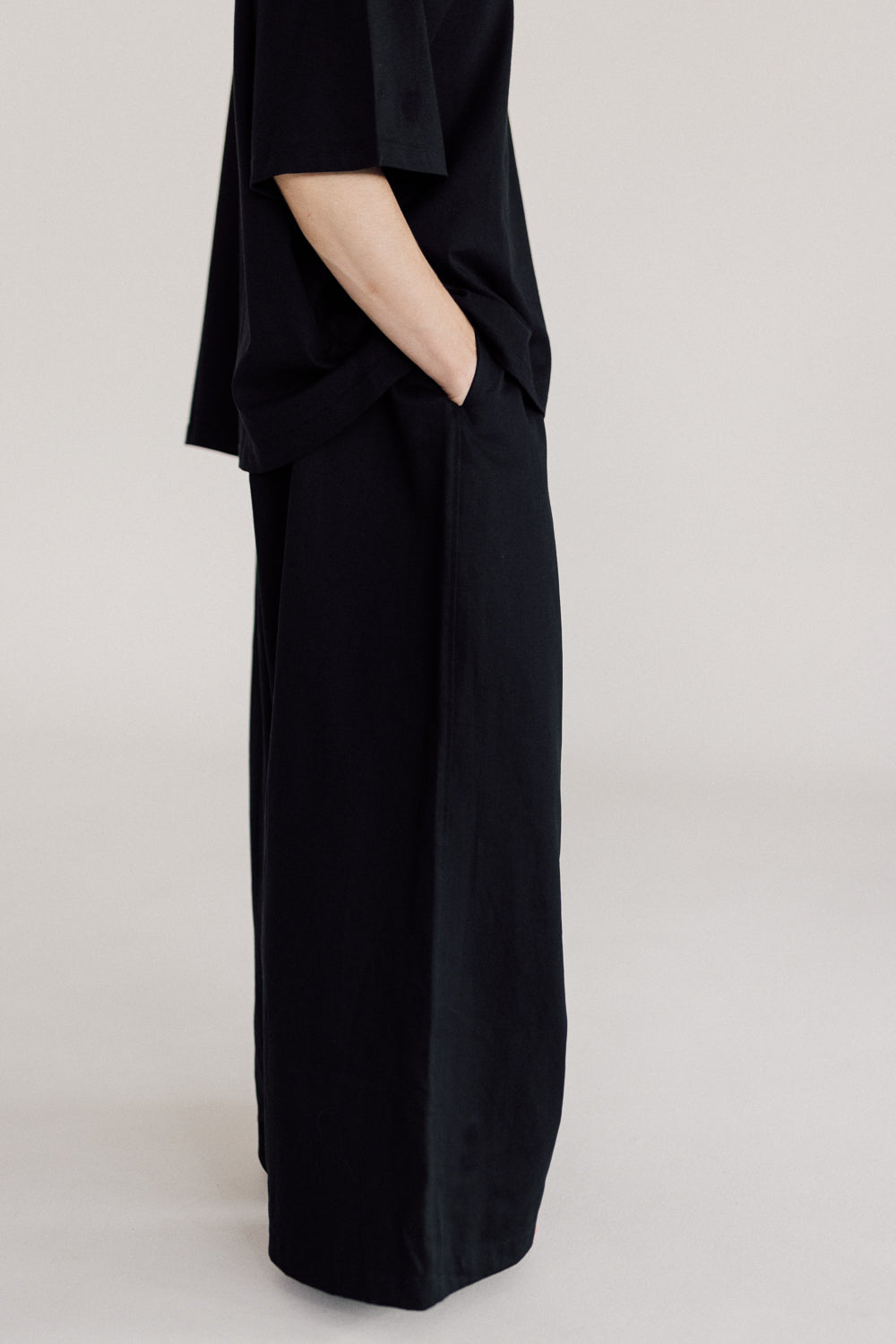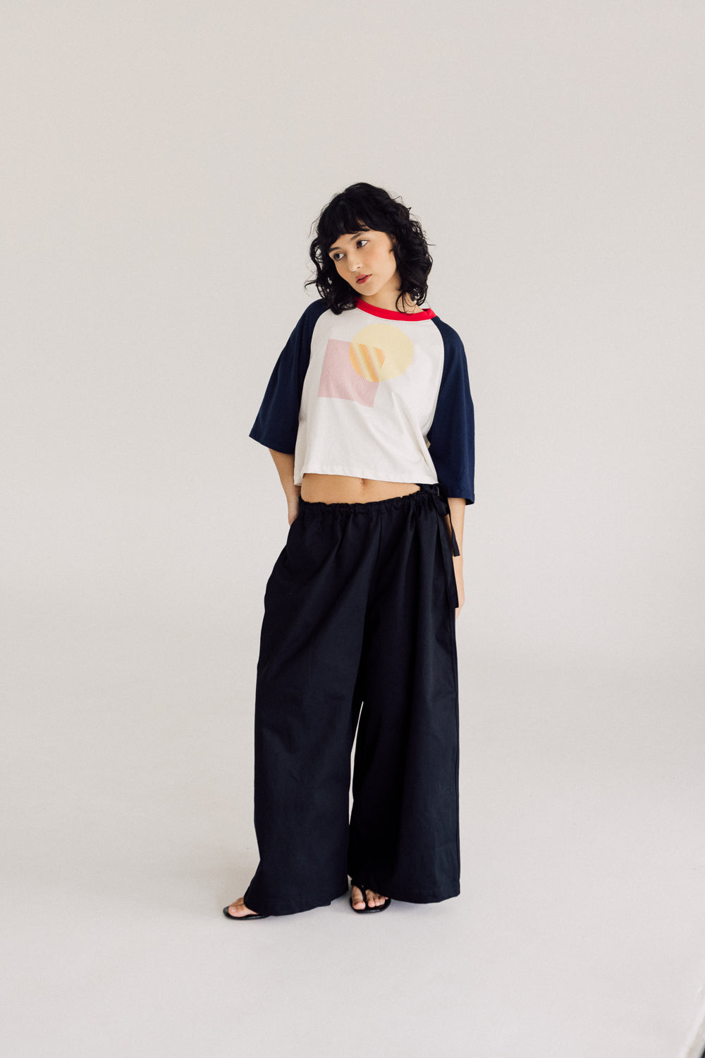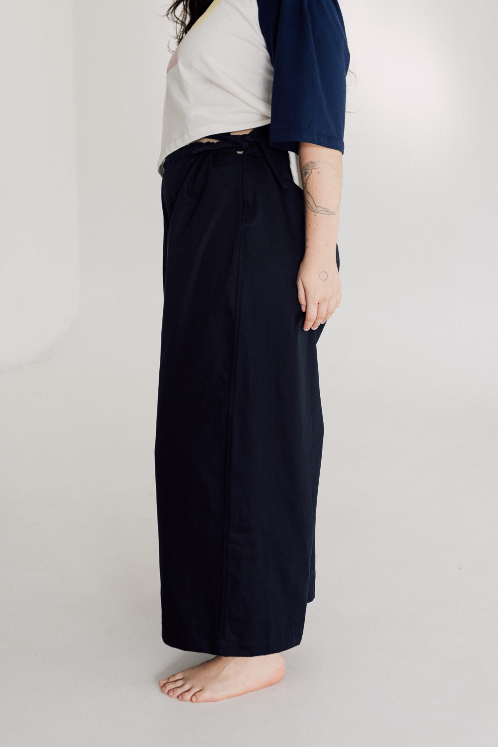 Este pantalón hecho en dril peso medio 100% algodón es nuestra nueva versión de un pantalón de silueta recta, que gracias a nuestra medida de pretina según el cuerpo puede dar una silueta final más ancha o ajustada, esta silueta cuenta con un solo amarre lateral, acompañado de un sistema de botones internos para asegurar la prenda y un solo bolsillo en el lado derecho de la prenda. La silueta ajustable permite que puedas usar esta prenda a diferentes alturas como a la cintura o a la cadera.