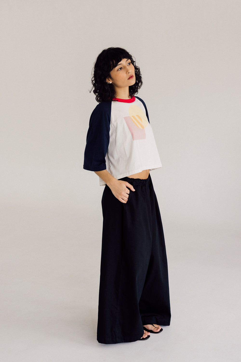 Para esta silueta decidimos implementar un sistema de tallas que modifica solo el largo de la prenda, ajustándose mejor a la estatura de nuestros clientes, de ahora en adelante podrás encontrar esta y otras referencias en C de cropped (recortado) y R de regular (el largo normal que hemos trabajado anteriormente)