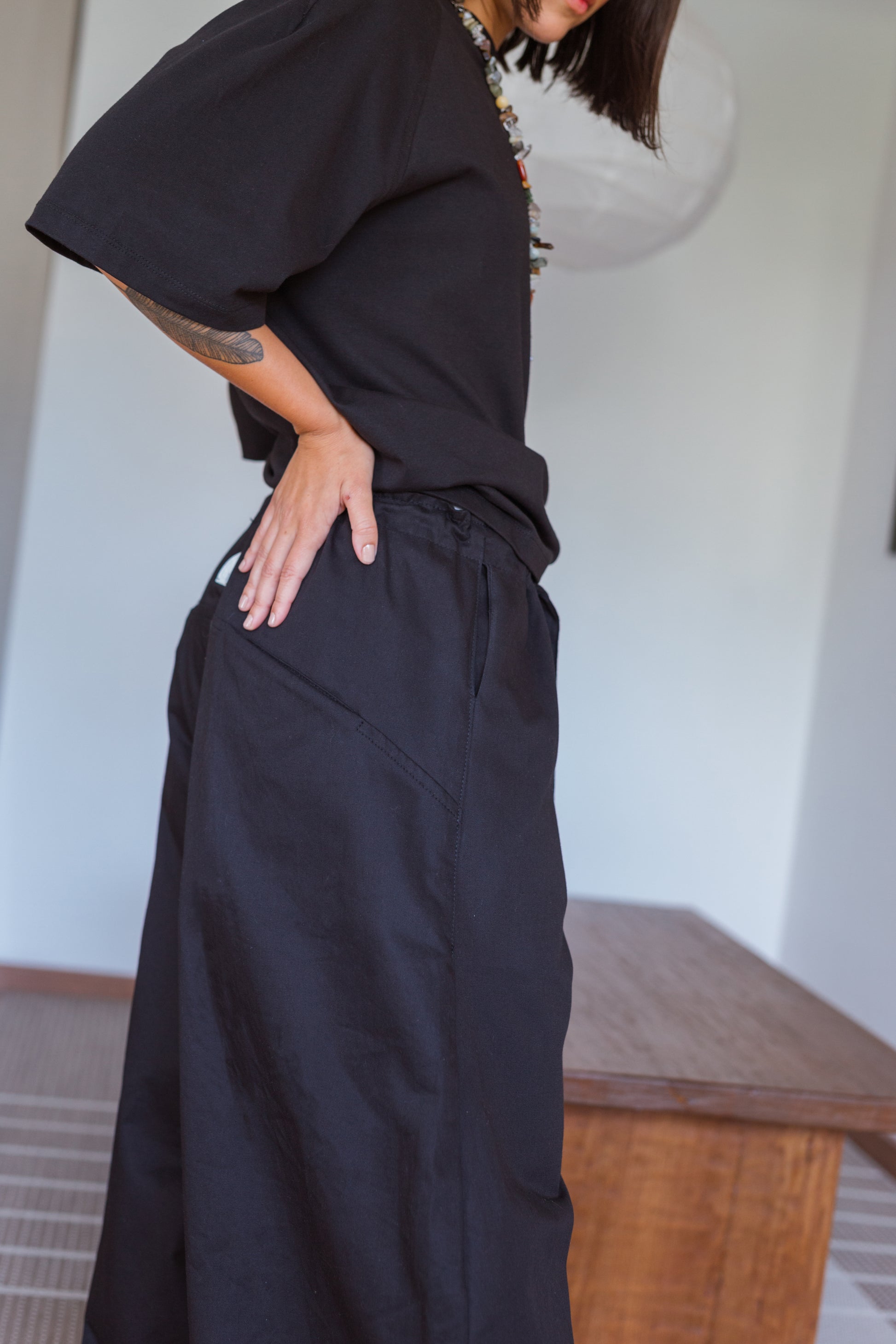 Multitalla_ Esta prenda está diseñada para que la silueta se ajuste al cuerpo del usuario, ya sea por amarres o su manera de caer sobre el cuerpo. Al ser construidas en algodón 100% nuestras prendas RIDDANCE no tienen stretch y la moldería es la que da el ajuste, por este motivo todas nuestras prendas tendrán un fit diferente según el cuerpo que las use.