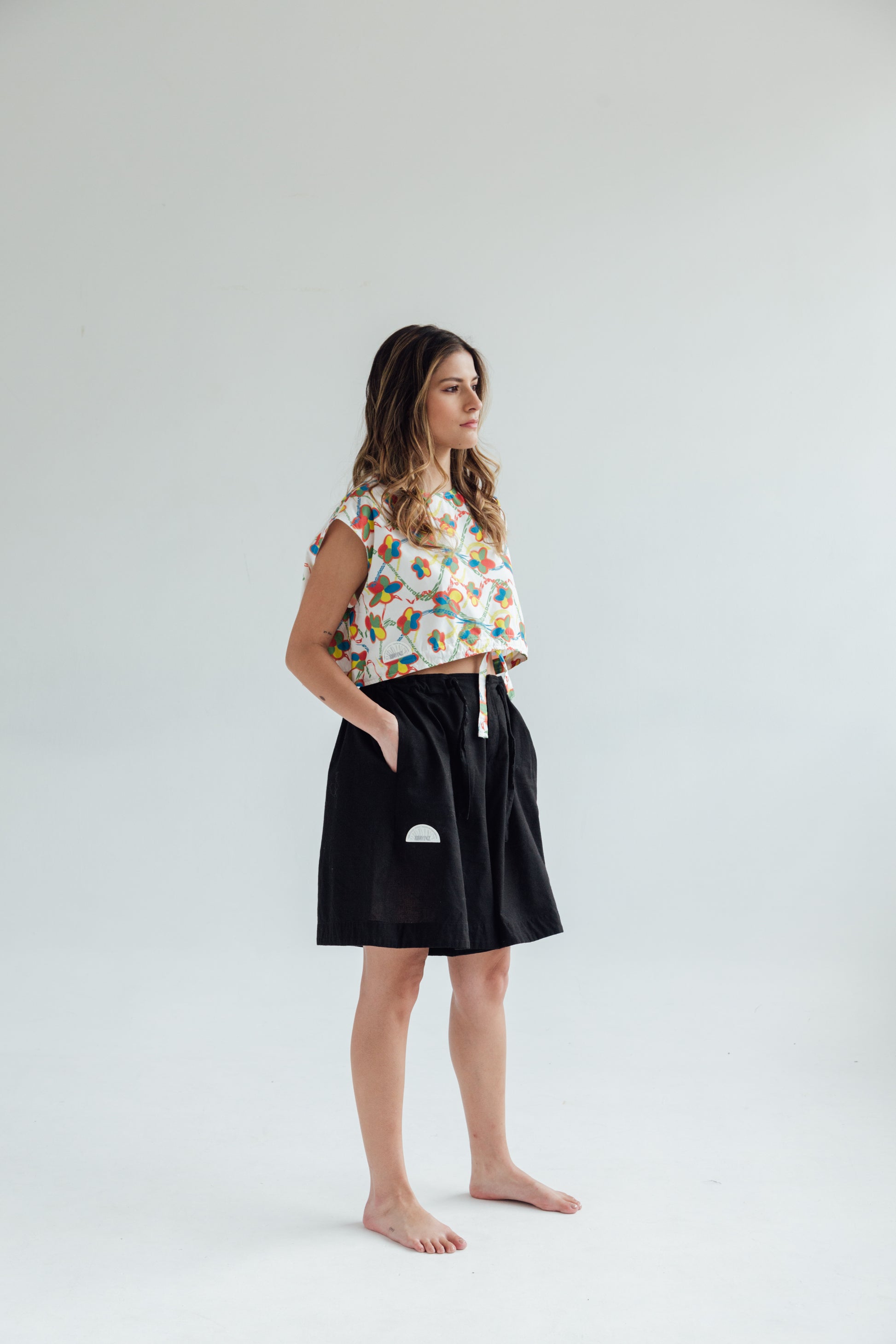 Short tipo bermuda con cintura graduable gracias a su cinturón del mismo material, puede adaptarse a cualquier talla desde la xs hasta la 5 xl. Cuenta con bolsillos y cremallera.