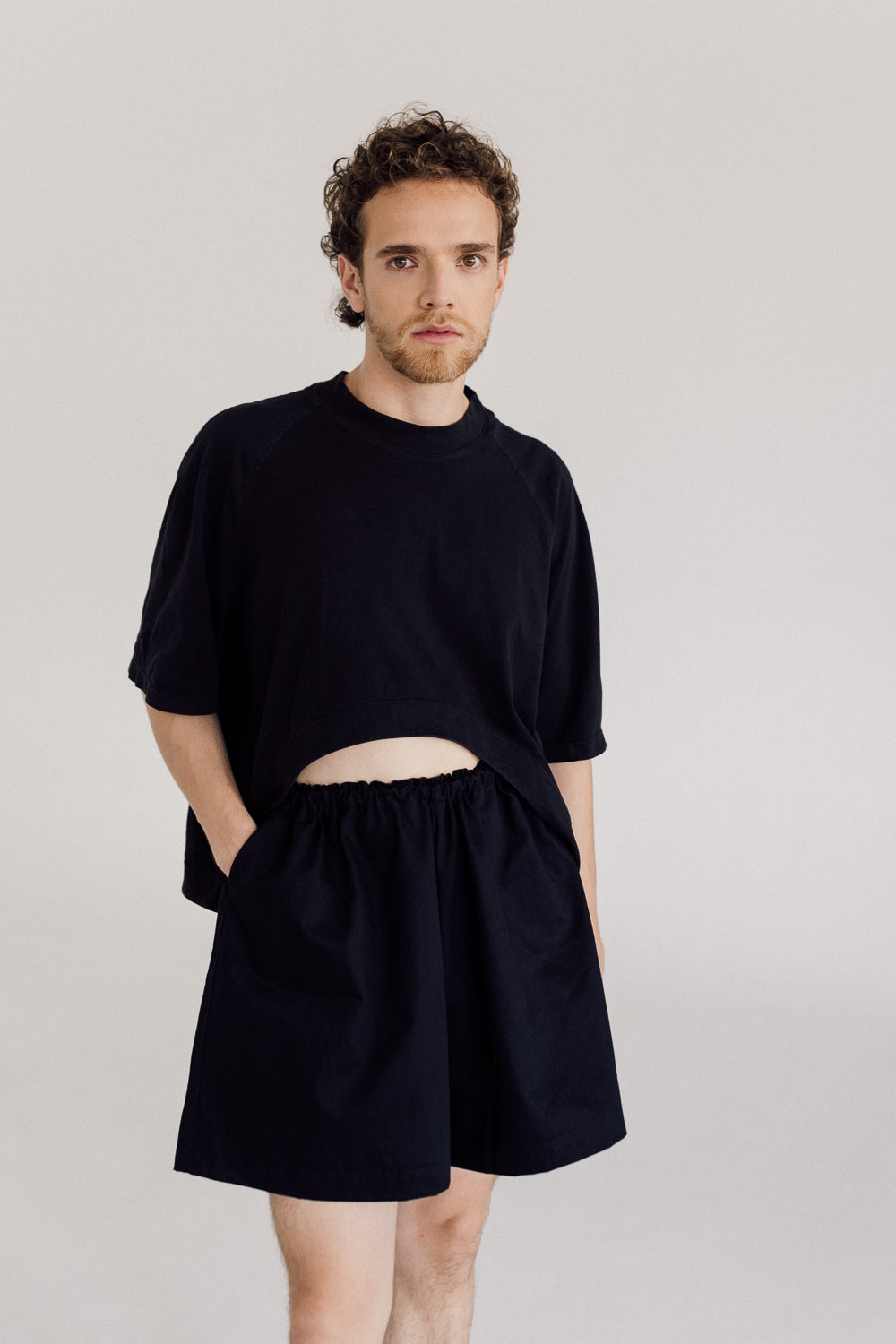 Este short hecho en dril peso medio 100% algodón es un short tipo bermuda, esta nueva silueta cuenta con un solo amarre lateral, acompañado de un sistema de botones internos para asegurar la prenda y un solo bolsillo en el lado derecho de la prenda. La silueta ajustable permite que puedas usar esta prenda a diferentes alturas como a la cintura o a la cadera.